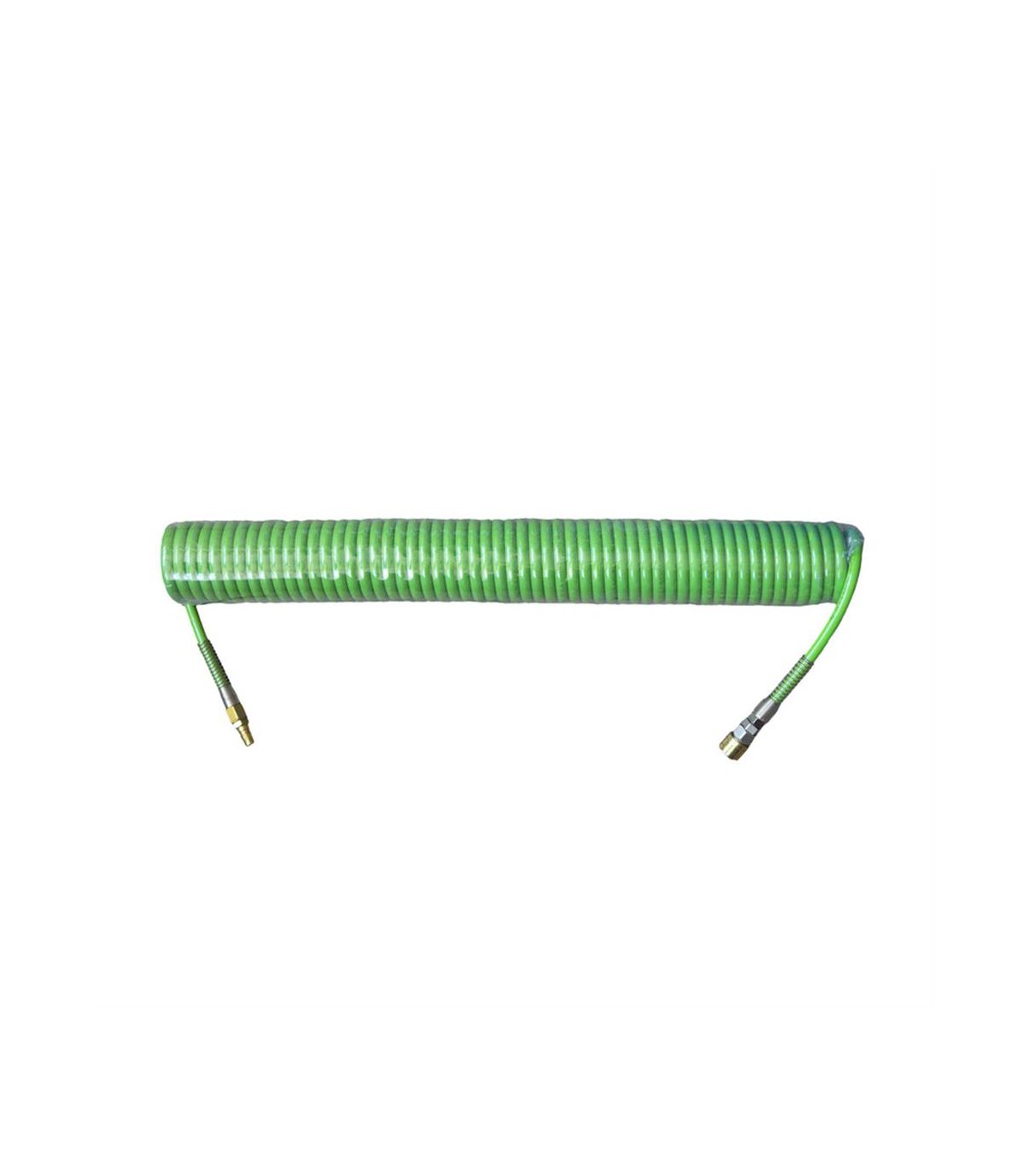 شلنگ فنری، ابزاری جهت انتقال هوای فشرده است. شلنگ‌های فنری بر مبنای متراژشان دسته بندی می‌شود تا در صنایع مختلف با توجه به نیاز استفاده شود. این شلنگ فنری دارای 15متر طول می باشد . جنس این شلنگ از مواد اولیه پلی اورتان است. این جنس قابلیت انعطاف بالا و مقاومت بالا در مقابل خراشیدگی‌ها شلنگ بر روی زمین را دارد. همچنین این مواد مقاومتش در برابر گرما و سرما بالا بوده و باعث افزایش عمر شلنگ فنری نیز می‌شود. قطر داخلی این شلنگ فنری 8 میلی‌متر و قطر خارجی آن 12 میلی‌متر است تا ضخامت استاندارد این شلنگ به کاربر اطمینان خاطر بابت ایمنی استفاده از این ابزار را بدهد. حداکثر فشار قابل تحمل این شلنگ30 بار است که بسیار فراتر از استانداردهای بین المللی است.