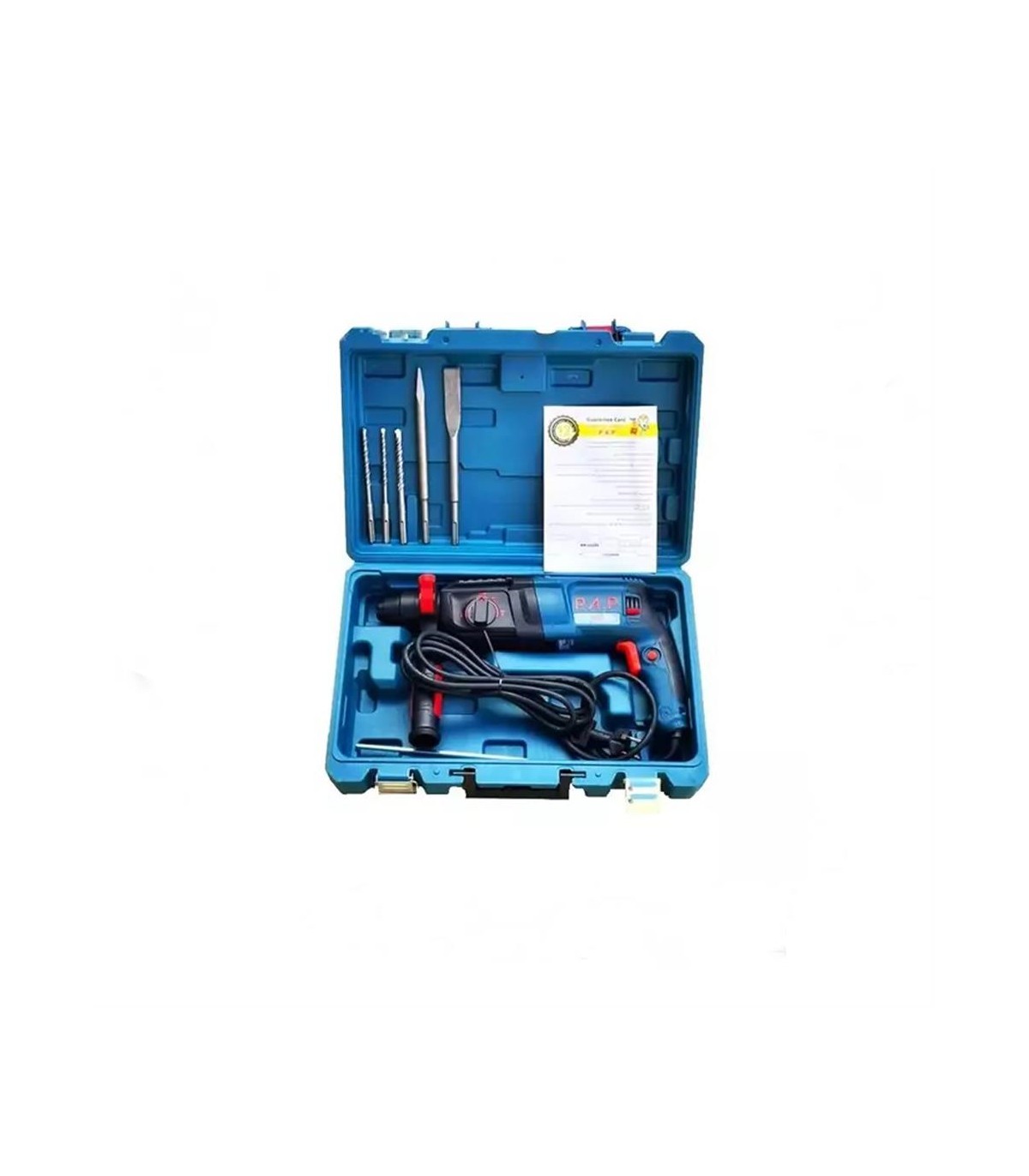 مشخصات ولتاژ برق: تکفاز 220 ولت فرکانس : 50 تا 60 هرتز توان: 1800 وات  سرعت ضربه: 4200 ضربه در دقیقه نوع قلم گیر: 4 شیار وزن: 5/2 کیلوگرم کاربرد: سوراخکاری و حفاری دارای بلبرینگ و کلیدهای صنعتی ضد غبار دارای...